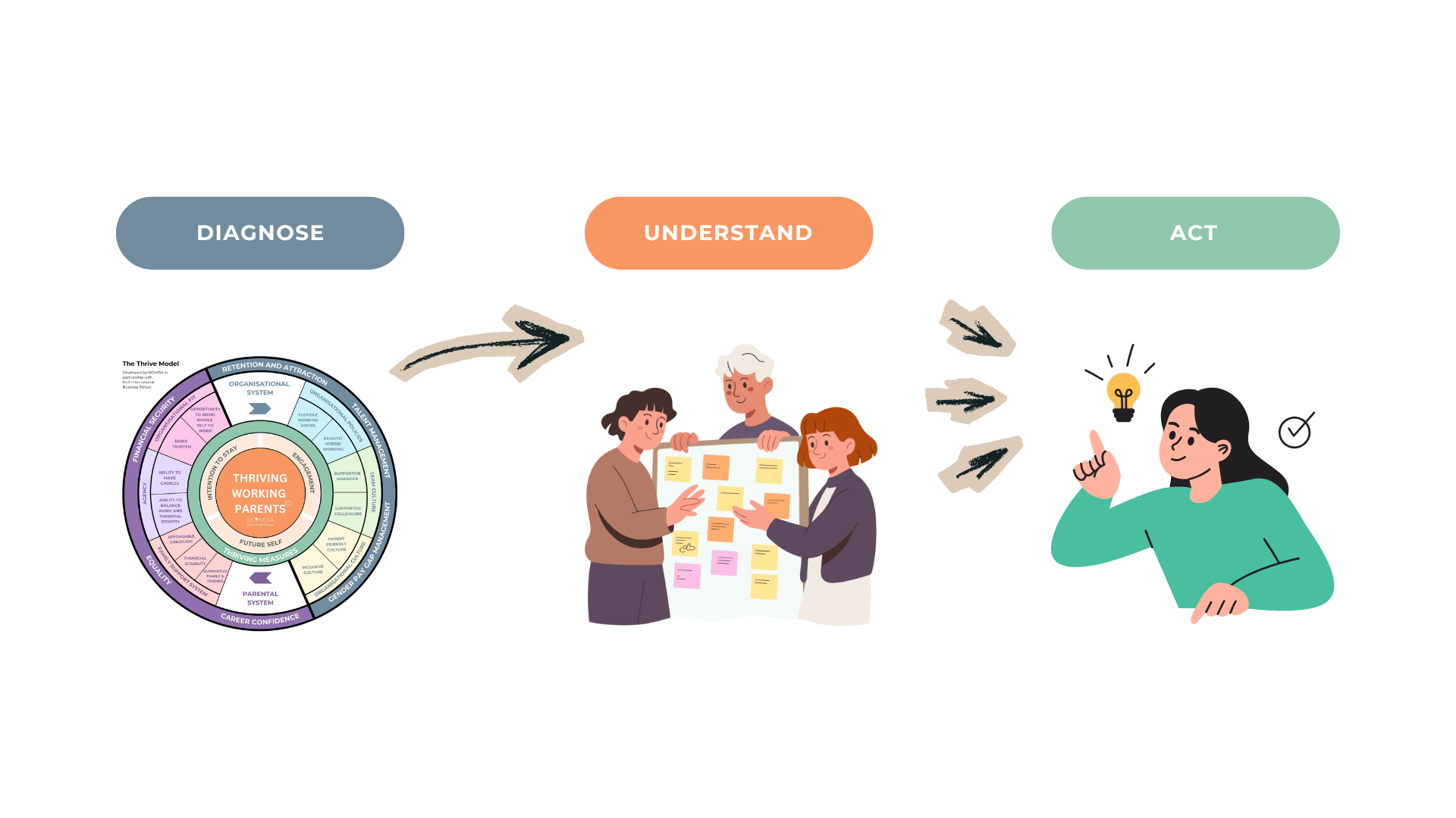 Built on four years of research with working parents and organisations, the Thrive Diagnostic gives you a clear, evidence-based understanding of how well your organisation supports working parents — and where to focus next.